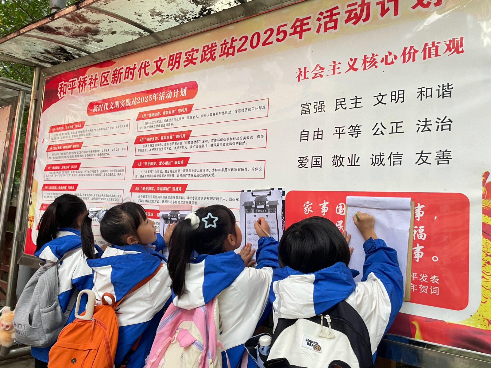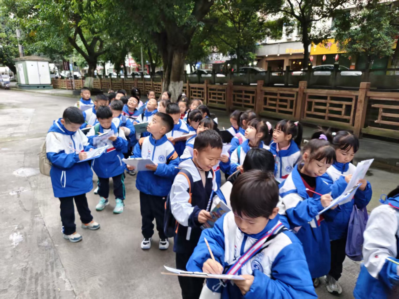 一年级组精心组织开展了以“字从遇见你”为主题的社会实践活动。在班主任和副班主任的带领下,孩子们有序前往和平巷、青果街、社坛新街三条具有本地特色的街道,开启了一场别开生面的“街头汉字寻宝之旅”。