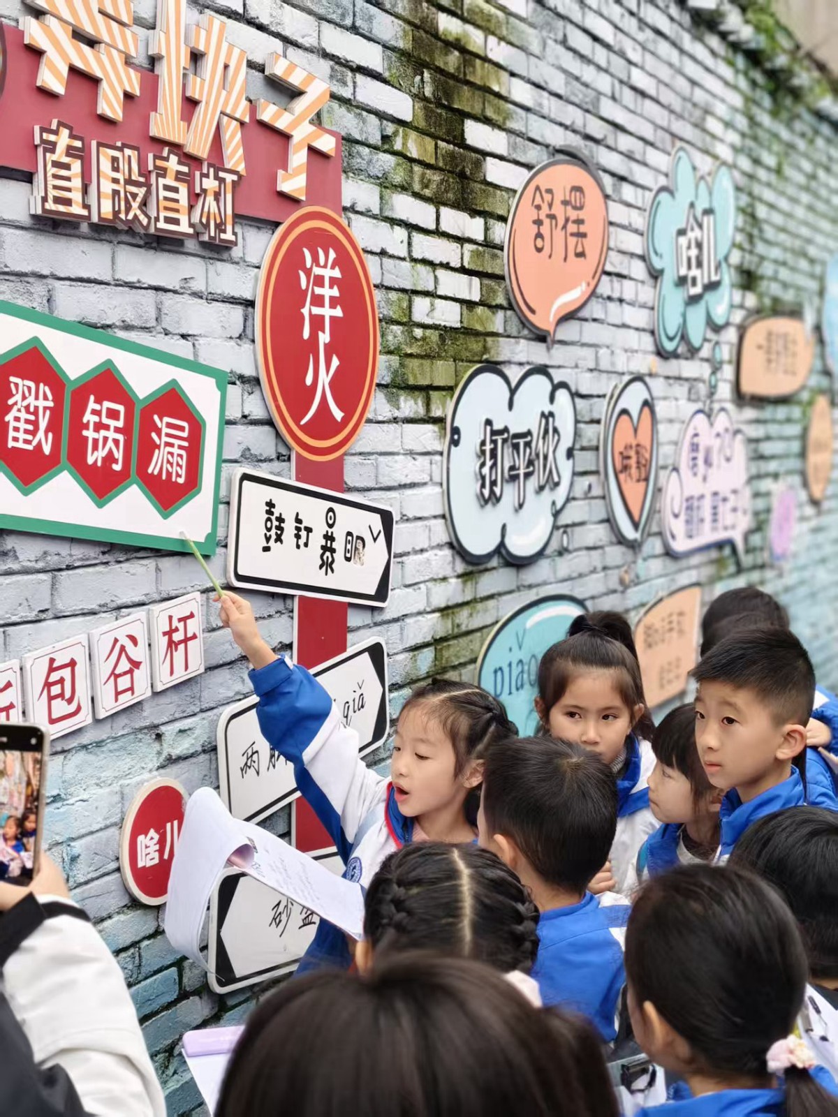 活动中,孩子们兴致勃勃地穿梭于各类店铺、招牌、广告牌、路标之间,认真寻找、记录认识的汉字。老师们适时讲解引导,结合实物、场景讲解汉字的由来与含义,让识字变得生动而有趣。