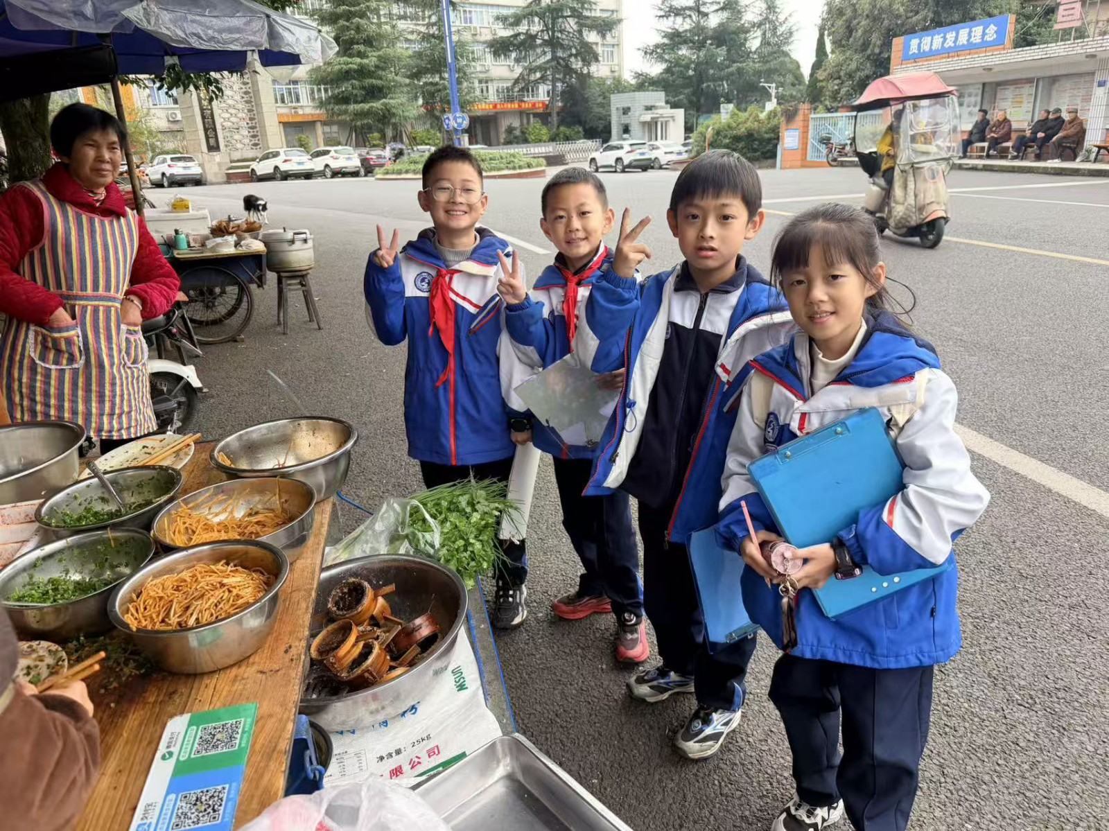 三年级的孩子们走出教室,开启了一场充满烟火气的“家乡美食文化之旅”,在夹江的街巷间探寻美食,品味家乡味道。酸甜的冰糖葫芦、软糯的米糕、麻辣的钵钵鸡……其中甜皮鸭、糖葫芦、砂锅米线最受欢迎。