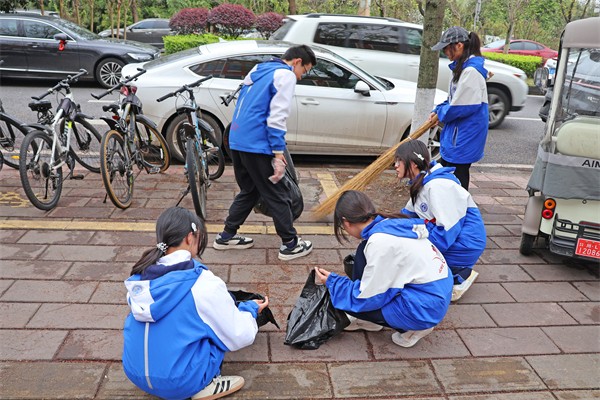 活动伊始,志愿者们在老师的带领下,手持垃圾夹、垃圾袋、抹布、水桶等工具,精神饱满地来到学校附近的街道和社区公共区域。大家分工明确,干劲十足,迅速投入到热火朝天的劳动中。