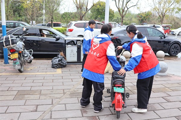 此外,他们主动规范摆放乱停乱放的非机动车,耐心劝导不文明停车行为,发放“共建文明新风尚倡议书”,对随地吐痰、乱扔垃圾、闯红灯、占道经营等不文明行为礼貌提醒、温和劝导。向市民、路人宣讲雷锋精神、志愿服务意义,倡导文明新风。