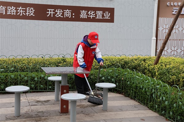 与此同时,另一组志愿者认真擦拭公交站牌、宣传栏、护栏和公共座椅等公共设施,让城市“家具”洁净如新。