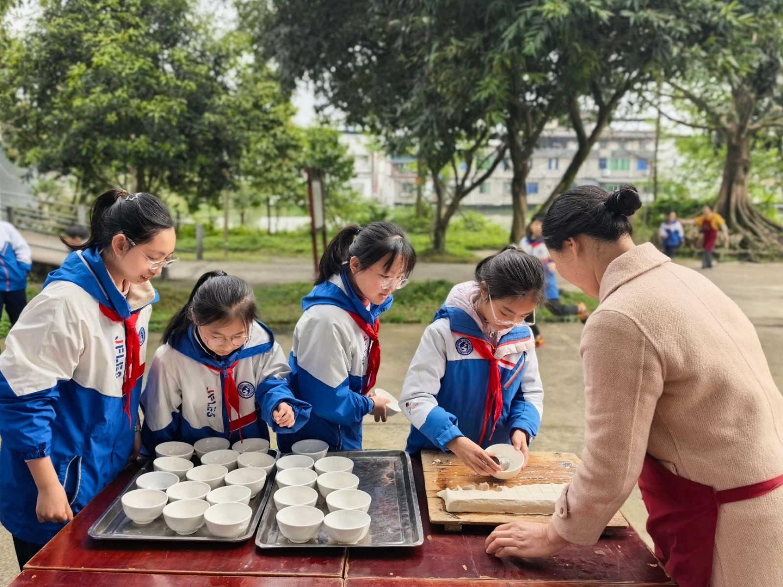 为弘扬中华优秀传统文化,让学生近距离感受非遗美食魅力,3月20日,六年级全体师生走进乐山西坝,开展西坝豆腐非遗文化体验研学活动,在动手实践中探寻传统技艺,品味舌尖上的非遗。