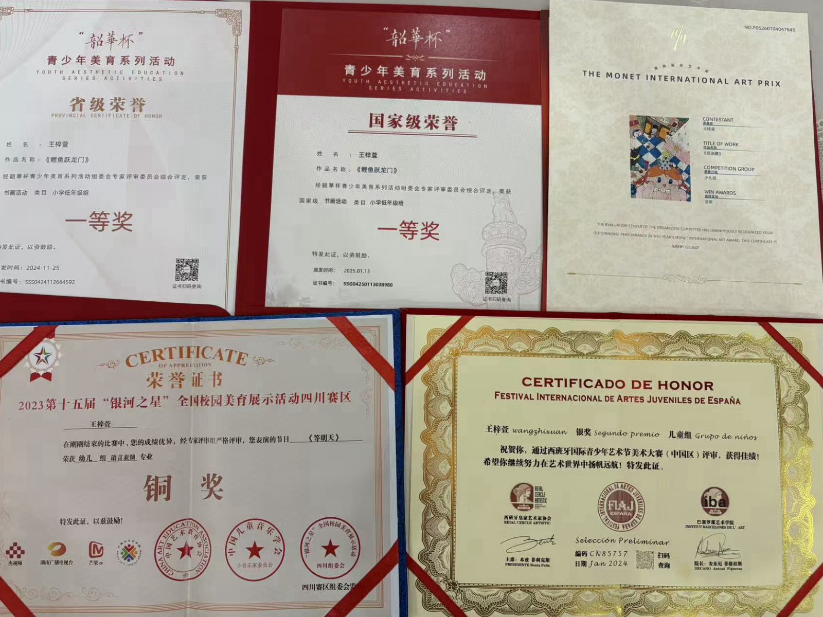 学习中,她专注进取,认真刻苦,课堂上积极思考,踊跃发言。她热爱运动,在运动场上奋力拼搏,用汗水展现健康少年的风采。她多才多艺,唱歌、打鼓、绘画、主持样样精通,自信开朗,乐观大方,像小太阳一样温暖着身边每一个人。在班级活动中,她主动担当,热心服务,用实际行动传递文明与友善。