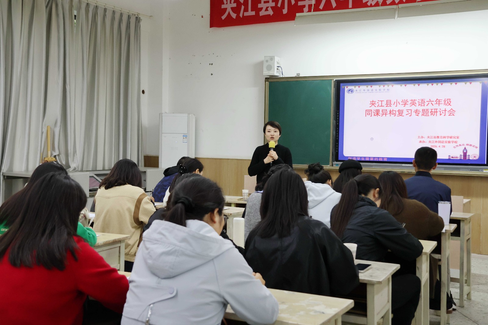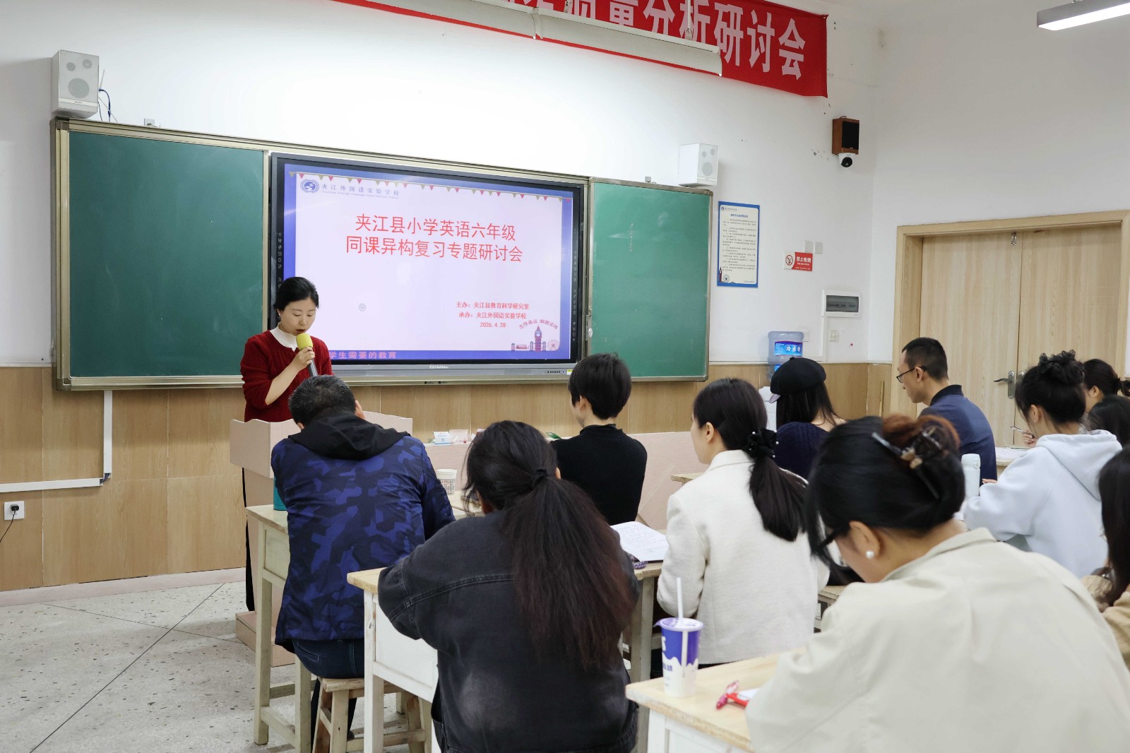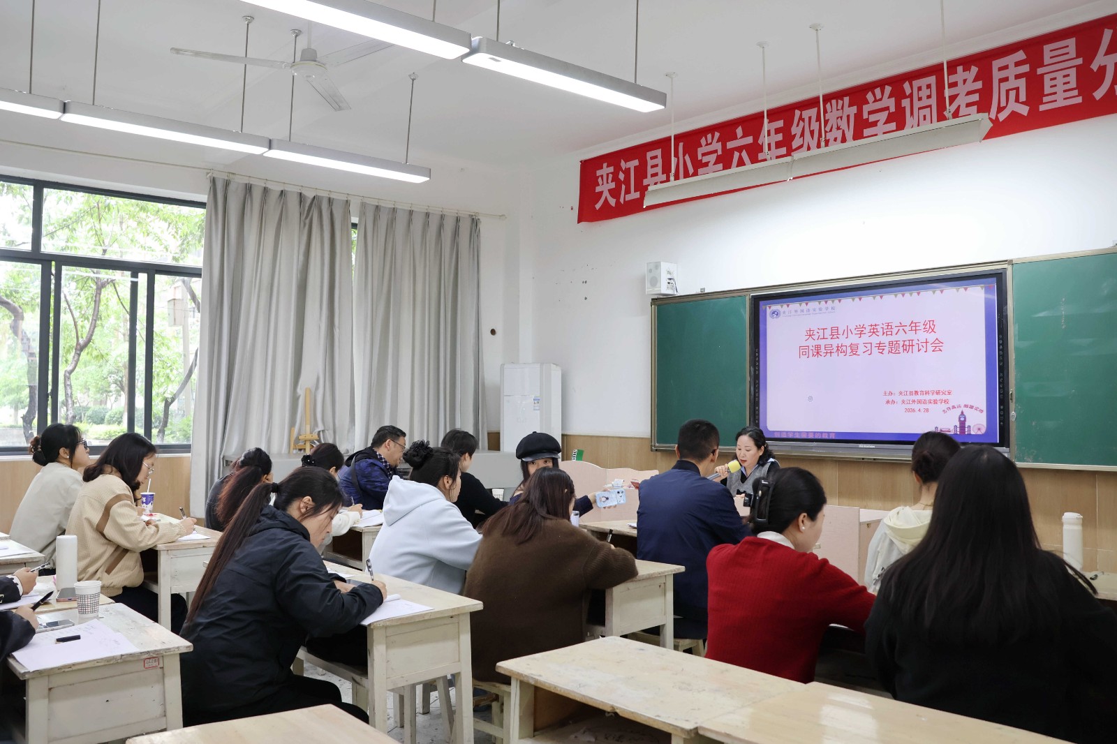 4月28日,夹江县六年级全体英语教师齐聚夹江外校,召开小学英语六年级同课异构复习专题研讨会,聚焦复习课教学优化,以课例示范、深度研讨助力毕业班英语教学质量提升。